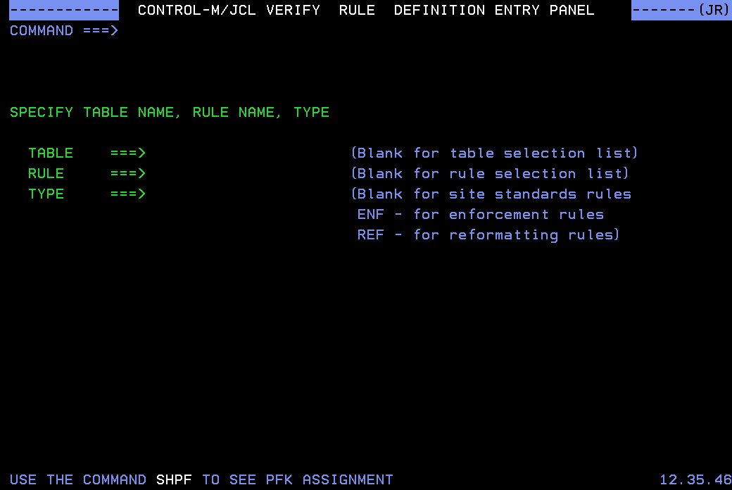 The Control-M JCL Verify Rule Definition - Entry Panel opens (see the following figure).